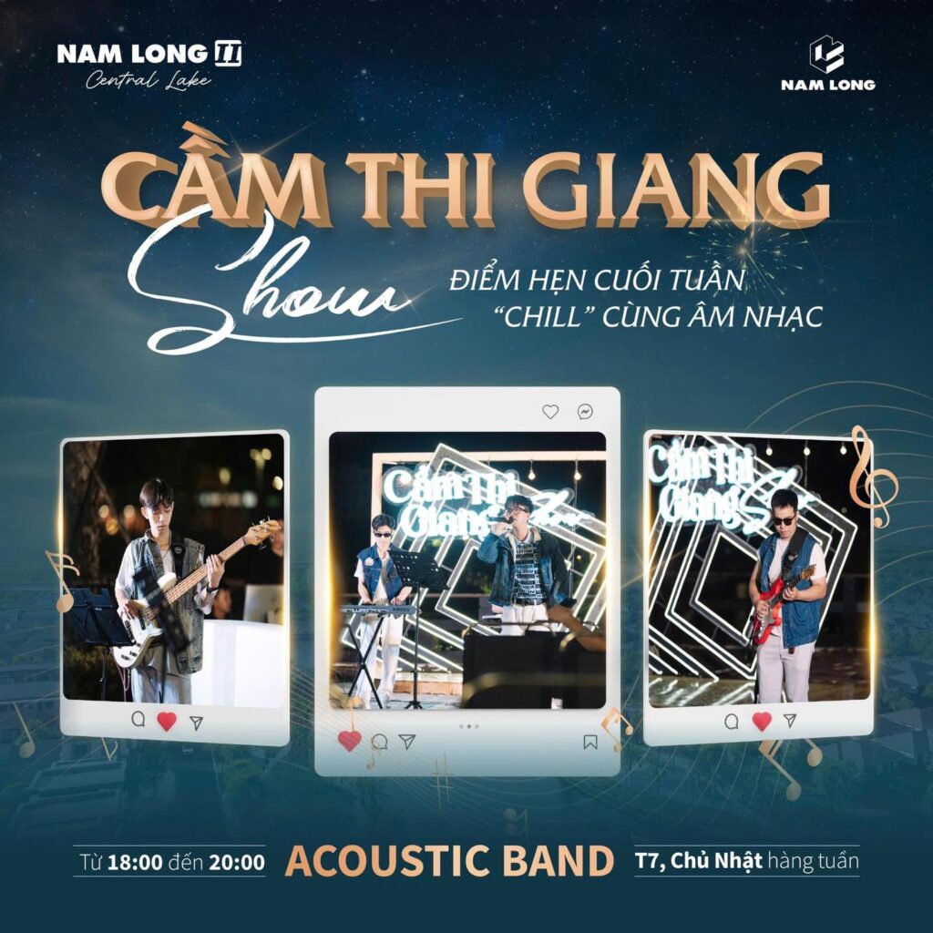 Cuối tuần này, hãy cùng tận hưởng không gian âm nhạc sôi động và thư giãn với chương trình Cẩm Thi Giang Show tại Nam Long Central Lake. Đây sẽ là điểm hẹn lý tưởng để bạn và gia đình cùng nhau “chill” trong những giai điệu acoustic ngọt ngào.